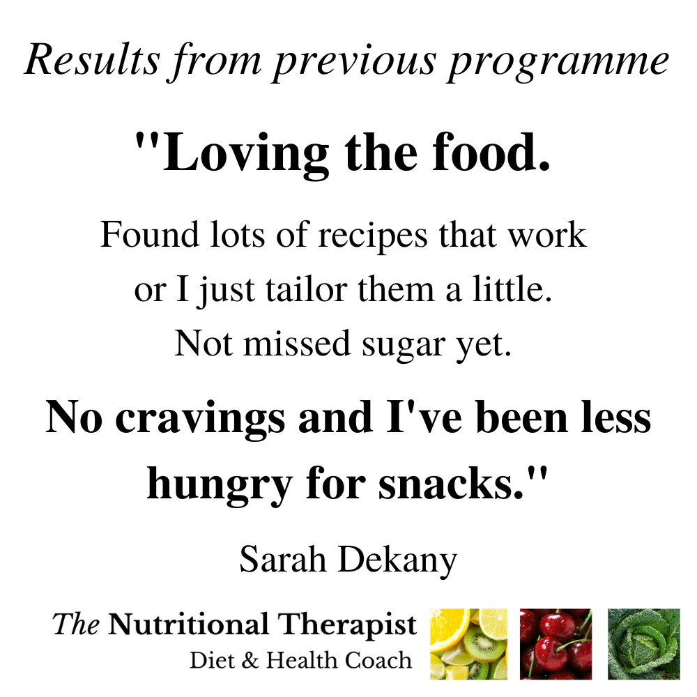 This unique 4 week online programme is for women who love food and want to look & feel great. I'll help you to understand your body better and work with it, not against it, making it so much easier to achieve great results. You'll learn practical & delicious solutions to beat cravings, lose weight, balance hormones and boost your energy.
